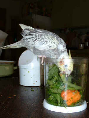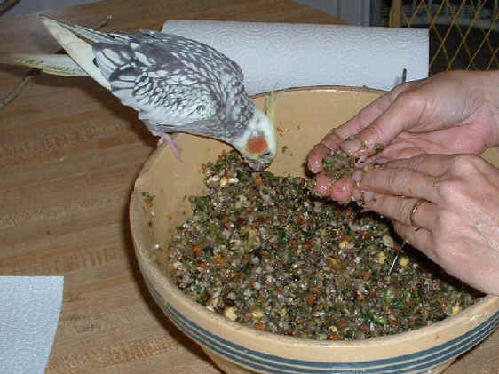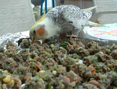 Get everything yummy and chop, cook, and crush: Almonds, apples, barley, green and black and otherwise beans, broccoli, carrots, cauliflower, corn, kale, okra, pasta, peppers hot, peppers sweet, rice, and anything they'll eat. Mix it all up and form into crop sized balls on a foil covered cookie sheet and freeze. Zip'em in a baggie and store froze for when. They'll love to help! |